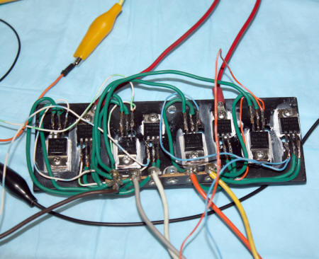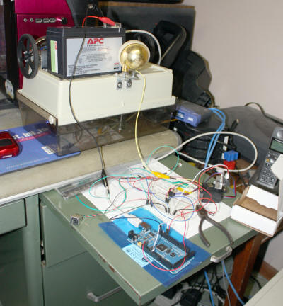 | Yes, those are Erector set parts! | Bread boarding the circuits on the bench before installing. |
