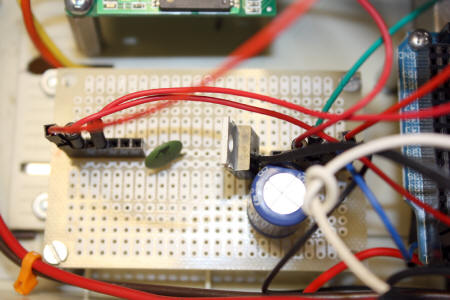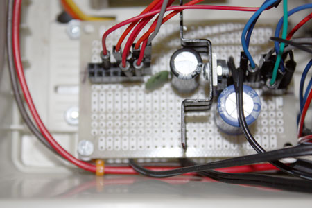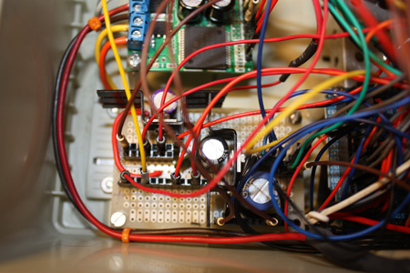| The Radio Shack IR receiver is mounted on this board. | Front view as 8/30/10. |