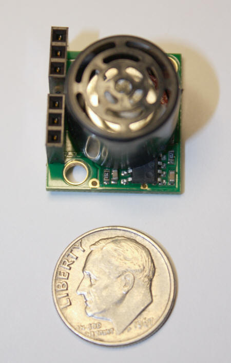 | All major parts mounted. | Maxbotix LV-MaxSonar-EZ0 ranger. Notice how small it is. |
