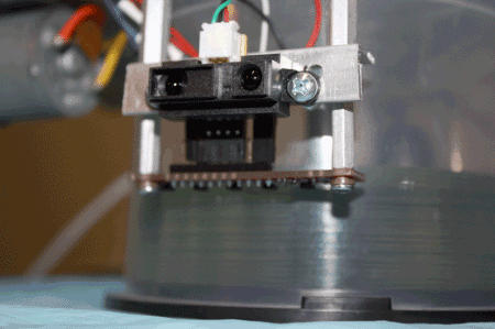 | Servo used to sweep the Sharp IR receiver. | The Sharp GP2Y0A21 IR receiver from Pololu. |