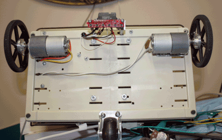 two DC motors which of course would be used to steer and move the robot. To those of you who ever thought about and/or built a robot, you know that those things are challenging enough in themselves to start with. |
