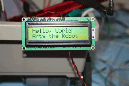 | Testing out the new display. | The robot now has an 16x2 LCD display. |