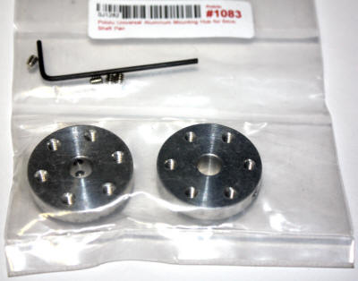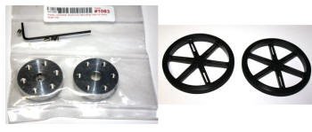 | Two motor mounts from Pololu Robotics. | Two wheel hubs from Pololu Robotics makes it very easy to add wheels to motors. |