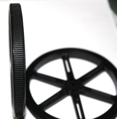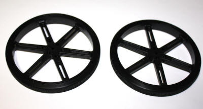 | Two 3.4" wheels from Pololu Robotics. | Two 3.4" wheels from Pololu Robotics. |