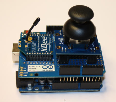 | These puppies are small, functional and easy to use and cost about $21 each! | Small joystick used to control robot via Xbee radio. |